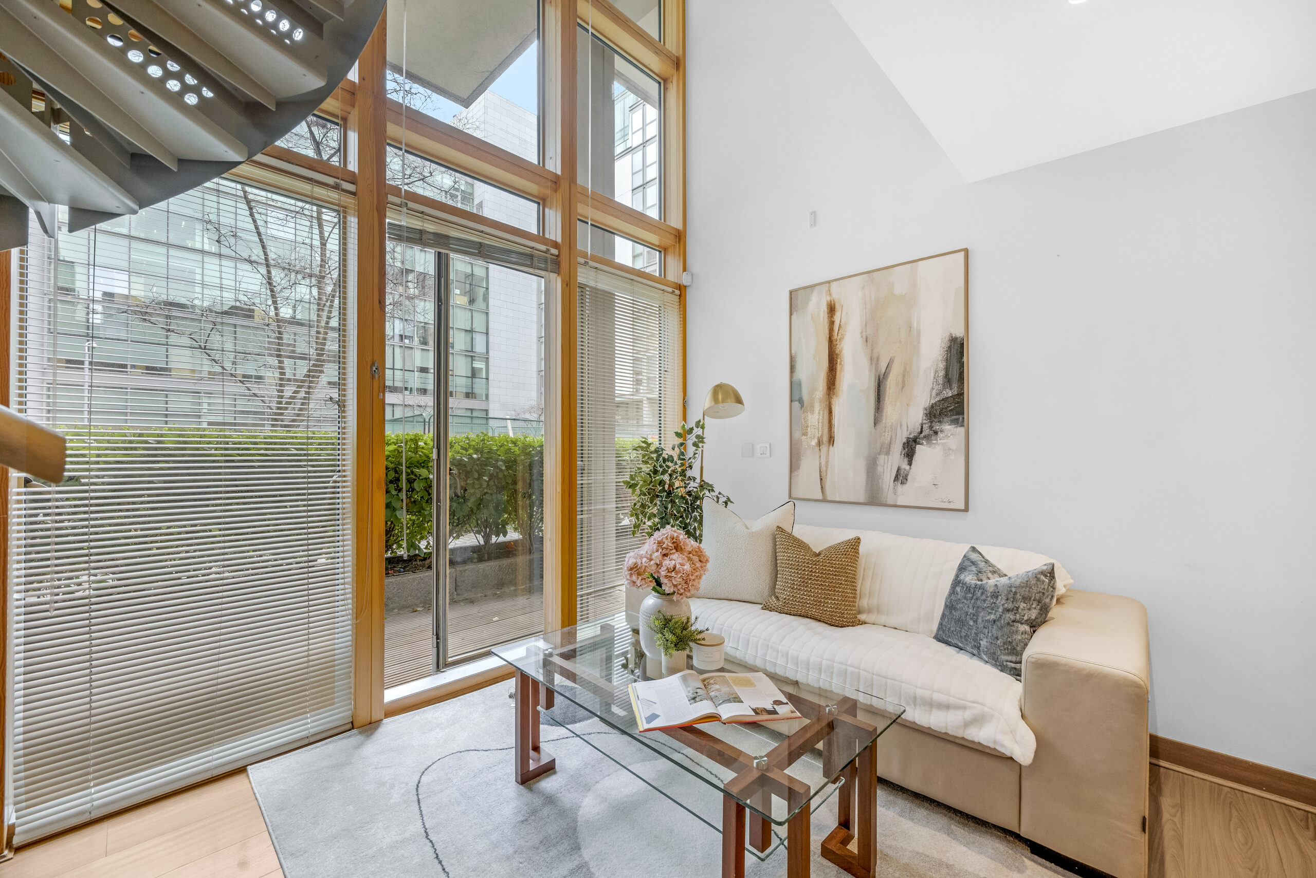 Bright dual-aspect layout with floor-to-ceiling glazing.
