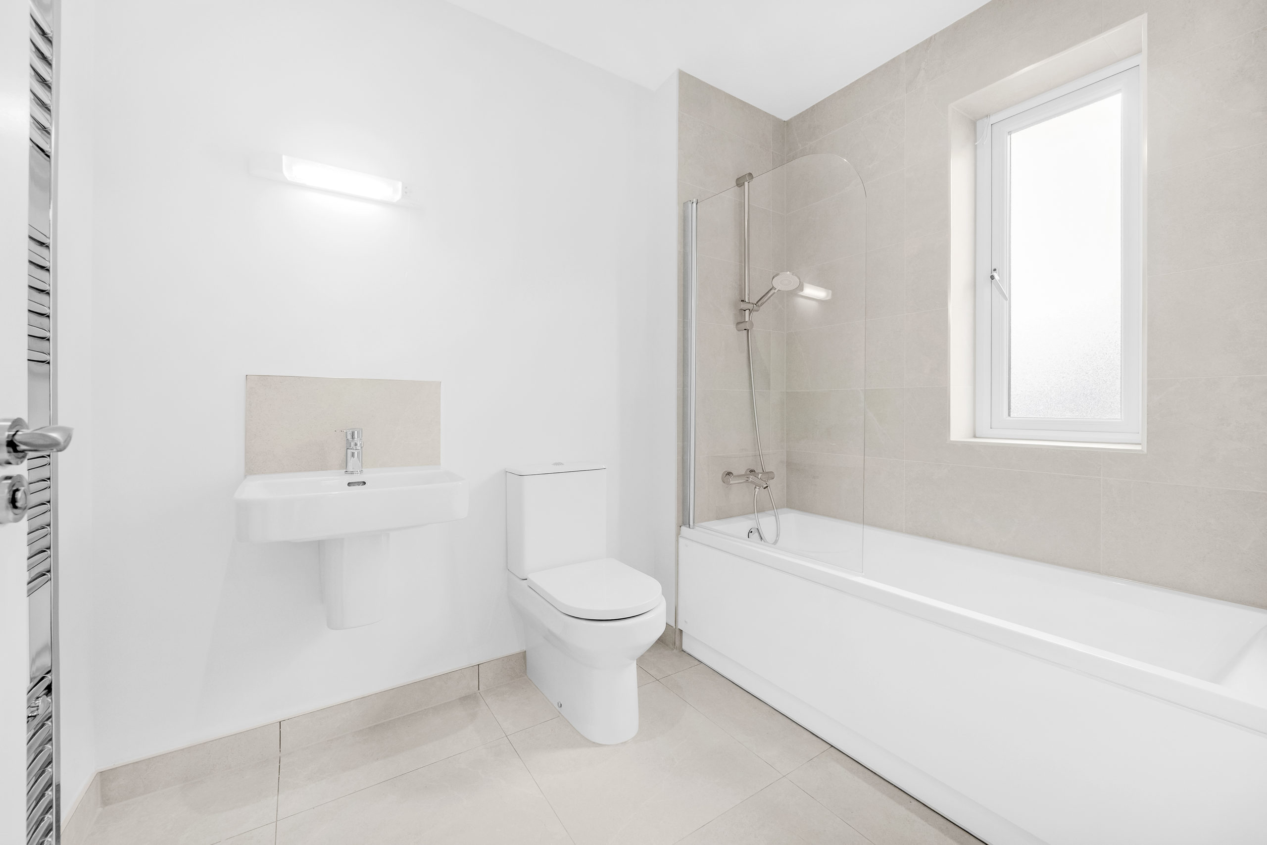 - Bathrooms featuring tiled flooring and walls, Sonas sanitaryware and heated towel rails.