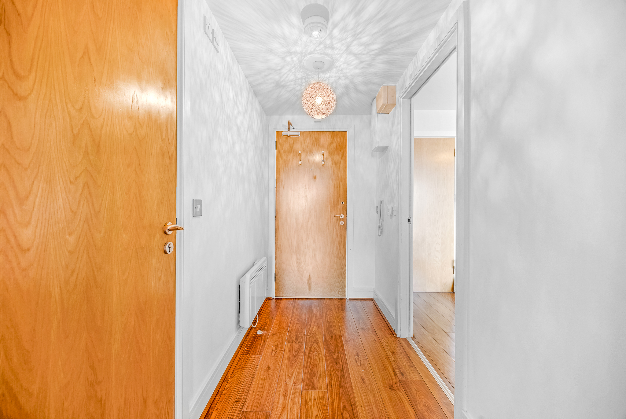 Welcoming entrance hall with timber flooring, intercom and access to all principal rooms.