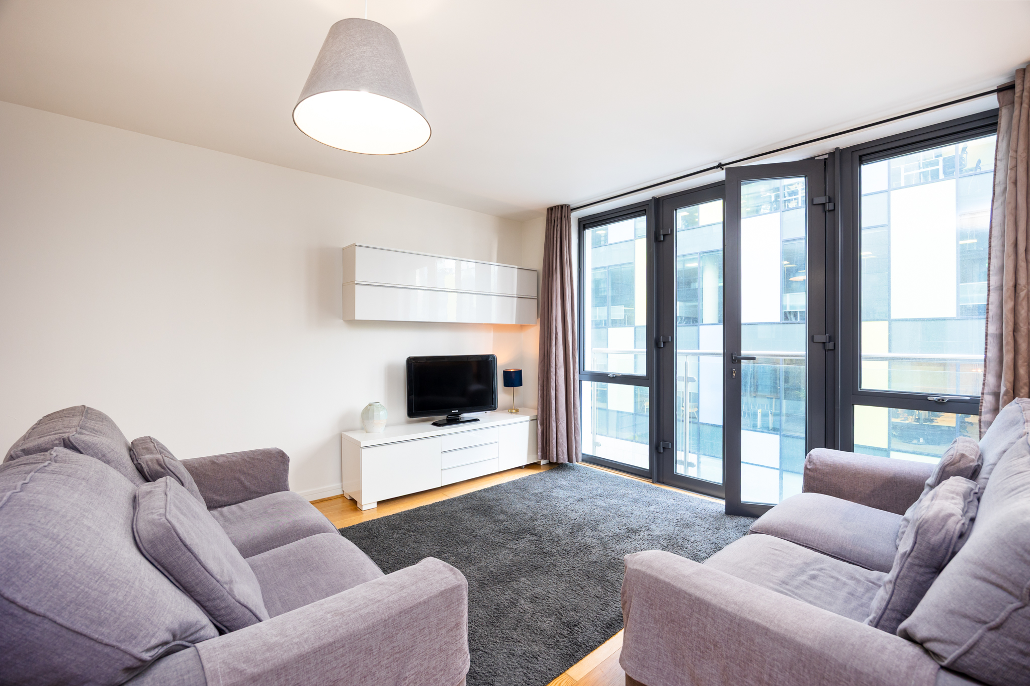 - East facing Juliette balcony providing views towards the River Liffey and Grand Canal Dock.