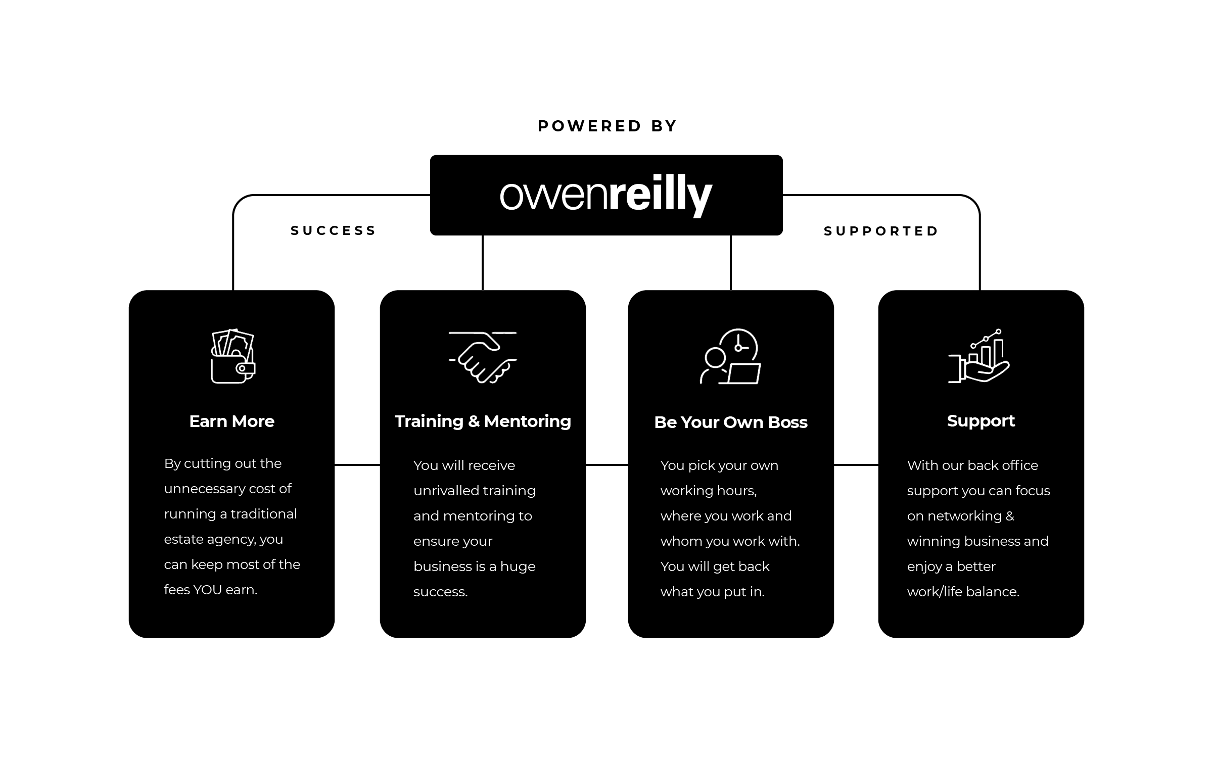 At Owen Reilly, you have the freedom to run your own estate agency business exactly the way you want. With complete flexibility and control, you set your own goals, your own schedule, and your own earning potential. There’s no cap on what you can earn.